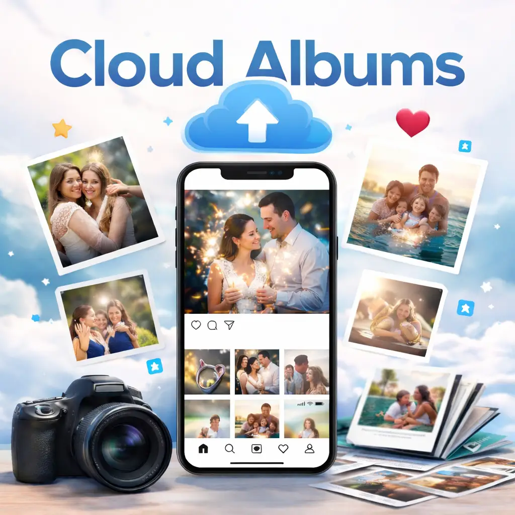 Create branded cloud albums for clients, delivering photos, videos, lifetime access, sharing, updates through your app.